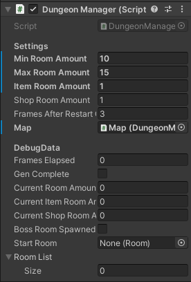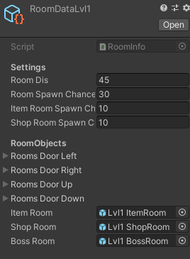 (The different rooms able to spawn and room spawn chances are saved in a scriptable object.)